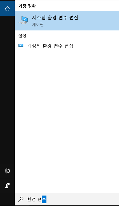 1. 'Windows 검색'에서 '환경 변수'로 검색