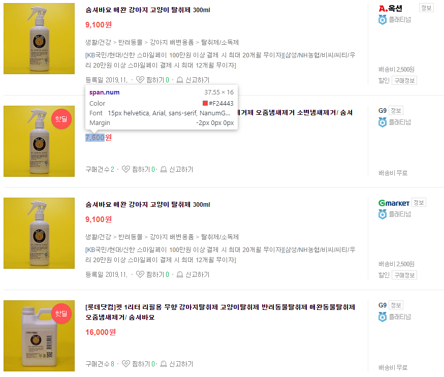 3. '핫딜'이라고 표시된 19번과 21번의 class가 _price_reload가 아닌 num으로 되어 있어서 발생한 에러임을 확인함