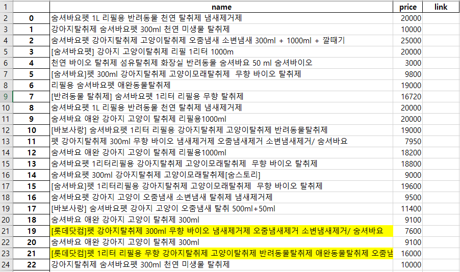 2. 엑셀로 저장한 데이터를 보니 19번과 21번에 문제가 있음을 확인함